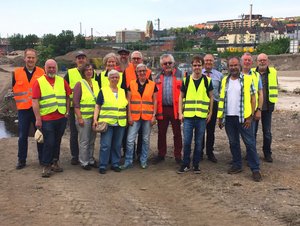 23.05.17 - von Ratsfraktion - Unter fachkundiger Führung durch WBH-Baufachbereichsleiter Hegerding und Stadtbaurat Grothe hat die grüne Fraktion die Baustelle der Bahnhofshinterfahrung besichtigt. Die Fraktion zeigte sich beeindruckt von den Dimensionen der schon fertiggestellten Bauabschnitte und vom Ausmaß der Flächenreserven, die durch die kommenden Ausbauschritte erschlossen werden.