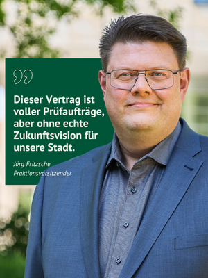 Jörg Fritzsche, Fraktionsvorsitzender der GRÜNEN im Rat der Stadt Hagen, macht deutlich: „Dieser Koalitionsvertrag ist voller Prüfaufträge und Konzeptbeauftragungen — aber es fehlt eine Zukunftsvision für eine klimagerechte, soziale und lebenswerte Stadt. Wer Verantwortung für die kommenden Jahre übernehmen will, muss sagen, wie Hagen klimaneutral, energieunabhängig und widerstandsfähig werden soll. Diese Antworten bleiben CDU und SPD schuldig."
