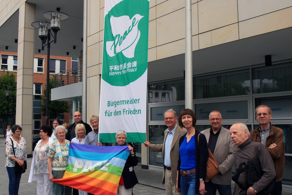In Hagen setzt sich der Verein HAGENER FRIEDENSZEICHEN für die Förderung des Friedensgedankens ein. Der Verein gründete sich 1991 im Anschluss an die Aktionen gegen den Irakkrieg. Seitdem gehen die Mitglieder immer wieder an die Öffentlichkeit – am Hiroshima-Tag ebenso wie am Antikriegstag oder am Tag des Reaktorunfalls in Fukushima. Der Verein hat die Stadt Hagen dazu gedrängt, Flagge zu zeigen für atomare Abrüstung. 1984 hatte der Rat beschlossen, die Stadt zur atomwaffenfreien Zone zu erklären - auf Antrag der Hagener Organisationen und Gruppen, die vor Ort gegen die neuen Mittelstreckenraketen kämpften. Seitdem ist jeder Hagener Oberbürgermeister Mitglied der internationalen Organisation „Mayors for peace“. Seit 2014 beteiligt sich die Stadt Hagen gemeinsam mit dem HAGENER FRIEDENSZEICHEN am 8. Juli eines jeden Jahres am Flaggentag. An diesem Tag hatte der internationale Gerichtshof 1997 die Drohung mit Atomwaffen für völkerrechtswidrig erklärt. Städte weltweit weigern sich, zu Zielscheiben von Atomwaffen zu werden. Sie appellieren regelmäßig an die Atomwaffenstaaten, das Atomwaffenarsenal bis 2020 endgültig abzubauen. Der 8. Juli ist seit 2017 auch der Tag, an dem 121 Staaten in New York in der UN die Ächtung der Atomwaffen beschlossen haben. Die ICAN hat dafür den Friedensnobelpreis bekommen. Nach 1985 für die IPPNW war es der zweite Friedensnobelpreis für die Antiatombewegung.