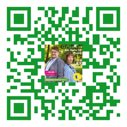 Der hier angezeigte QR-Code führt euch zu hagenwirdgruen.de. Unser Wahlprogramm findet ihr dort nicht nur in den Versionen "kurz & knapp" und als ausführliche Textversion, sondern nun auch in einer Ausgabe in Leichter Sprache! Neben den Kandidat*innen für den Rat findet ihr jetzt auch unsere Leute für die Bezirksvertretungen und die der dazu gehörenden Wahlkreise. Den Terminkalender für unsere Veranstaltungen findet ihr hier: https://hagenwirdgruen.de/termine/. #hagenwirdgruen ist unser Hashtag für diese Wahl.