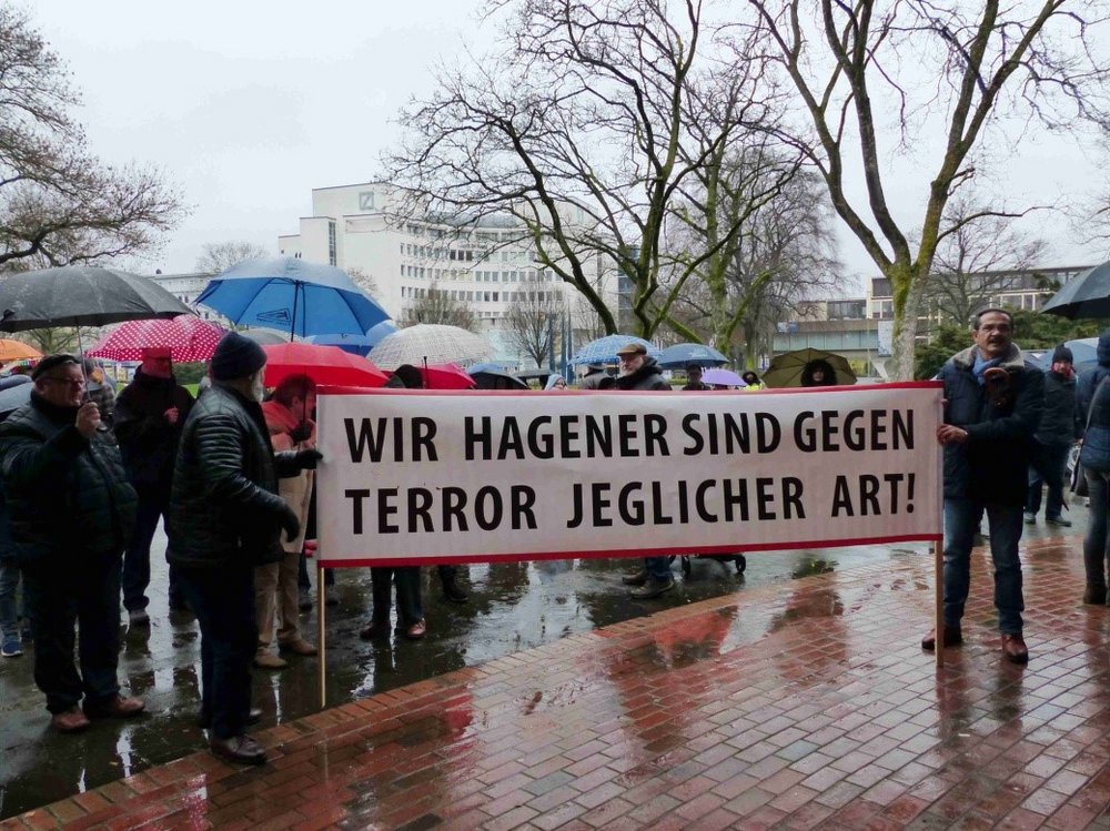 Für die Hagener GRÜNEN gab Vorstandsmitglied Tobias Rödel eine Stellungnahme ab. „Also lasst uns in Zukunft noch entschiedener im Schulterschluss stehen gegen Intoleranz und Hass. Überall wo wir sind: Auf der Arbeit, in der Familie, bei Freunden, in der Stadt, im Bus, hier im Volkspark: Die einzige Antwort auf alles und jeden, der Zwietracht säen will und uns als Gemeinschaft auseinander bringen will, kann nur sein: Für eine liberale, freundliche und friedliche Gesellschaft: Keinen Millimeter nach rechts!“