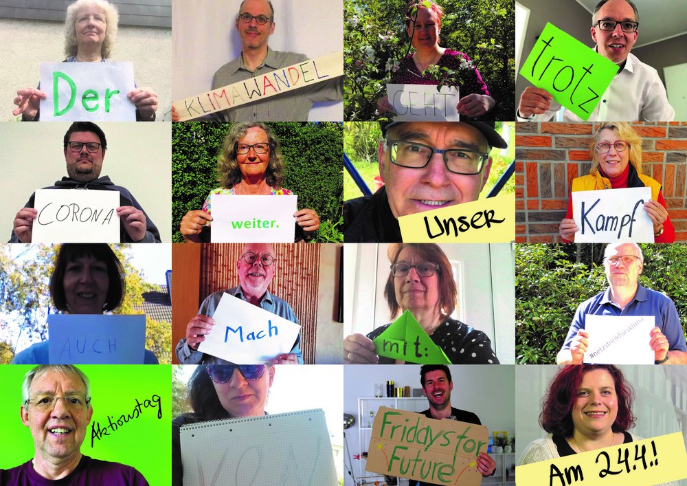 Für die Collage zum FFF-Aktionstag haben sich GRÜNE Ratsmitglieder (R), Vorstand (V) und Geschäftsführende (G) zusammengetan. (küc)